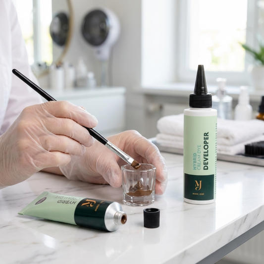 - Mezcla 2 partes de tinte con 1 parte de oxidante (3 % o 6 %) hasta obtener una textura cremosa.